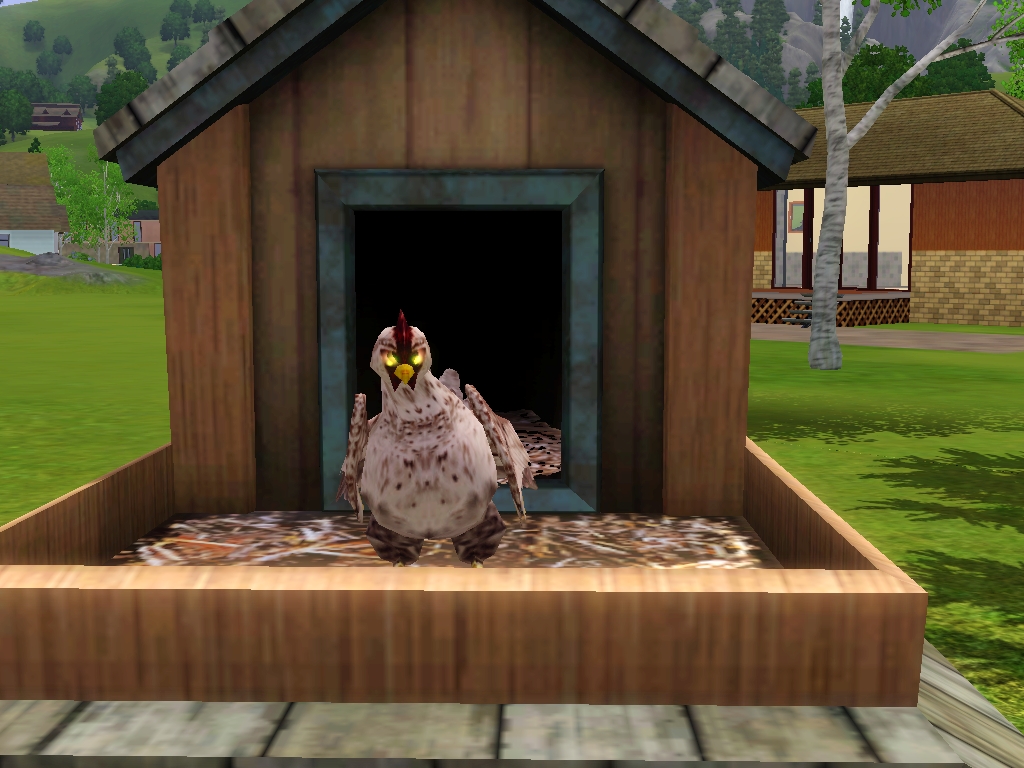 - edited April 2013My neurotic, insane, mean spirited, hot headed, sims love Charles (whom I refer to as a rooster). They automatically go out to ask questions to the chickens, just wish they would autonomously fight with Charles. They are particularly happy when they win!
